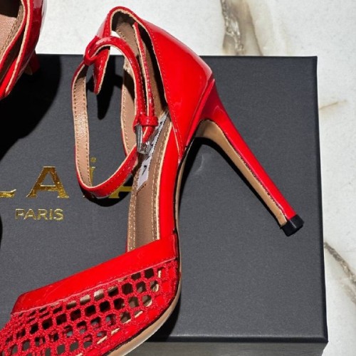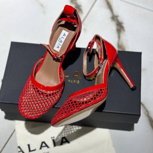 Красные женские босоножки от Alaia из лакированной кожи и сетки. Легкие босоножки на тонком каблуке шпильке подчеркнут стройность ваших ног. Ремень на щиколотке легко регулируется по длине с помощью миниатюрной пряжки. В нашем интернет-магазине вы можете купить копии босоножек с доставкой по Москве и по всей России.