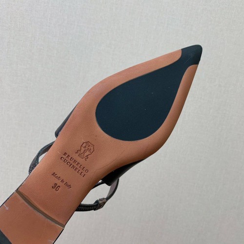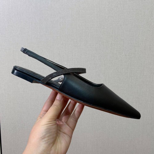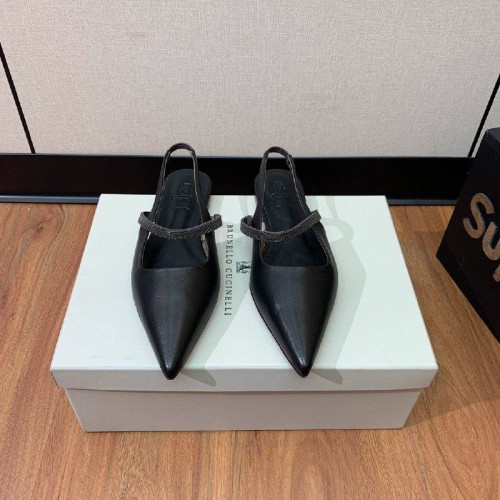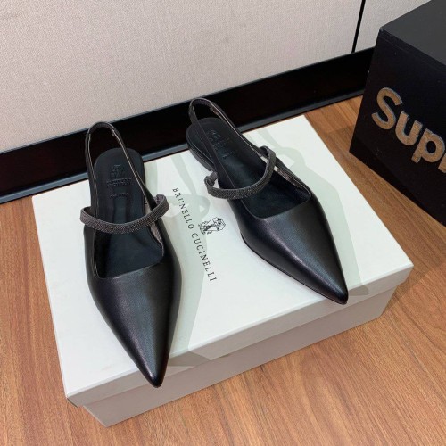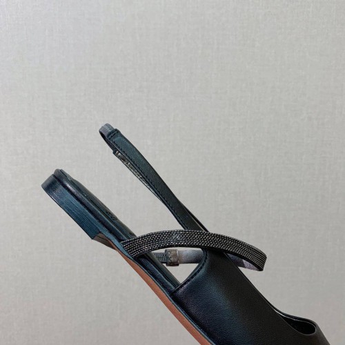 Стильные черные босоножки Brunello Cucinelli из натуральной кожи. Мониль - культовое украшение коллекций Brunello Cucinelli придает босоножкам сверкающую ноту. Острый носок и низкий каблук делают пару обуви невероятно удобной даже для длительных прогулок. В нашем интернет-магазине вы можете купить копии босоножек с доставкой по Москве и по всей России.