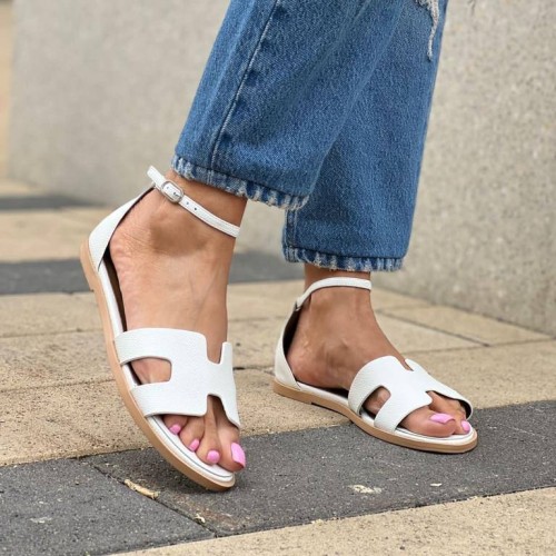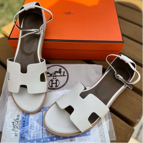 Женственные белые босоножки Hermes из натуральной кожи. Босоножки Hermes с открытым носком, закрытой пяткой и ремешком. Современные, воплощающие женственность и элегантность босоножки - это обувь уверенно удерживающая лидирующие позиции среди модных трендов. Неугасающая популярность босоножек объясняется их оригинальностью, удобством, а так же способностью зрительно уменьшить размер ноги. В нашем интернет-магазине вы можете купить копии босоножек с доставкой по Москве и по всей России.