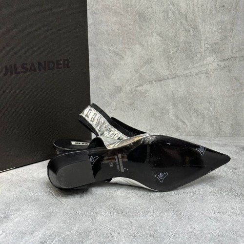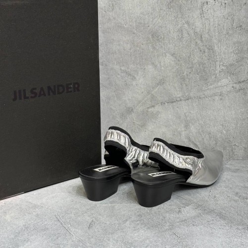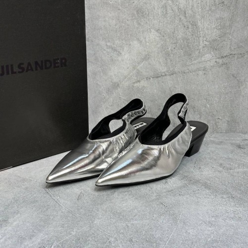 Яркие серебристые босоножки от Jil Sander из натуральной кожи. Стильные босоножки имеют заостренный носок и кожаную резинку на заднике. Обувь сочетает в себе комфорт и элегантность, что позволит вам чувствовать себя прекрасно в любой ситуации. В нашем интернет-магазине вы можете купить копии босоножек с доставкой по Москве и по всей России.