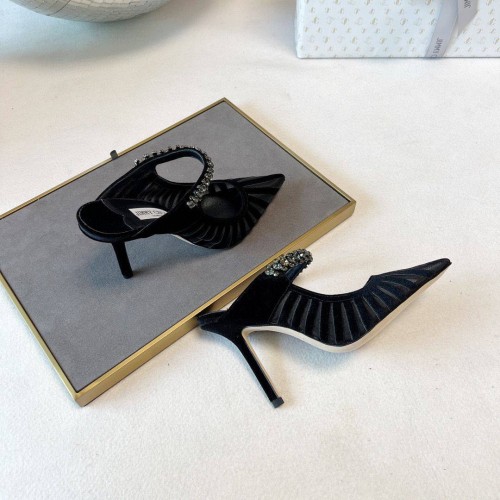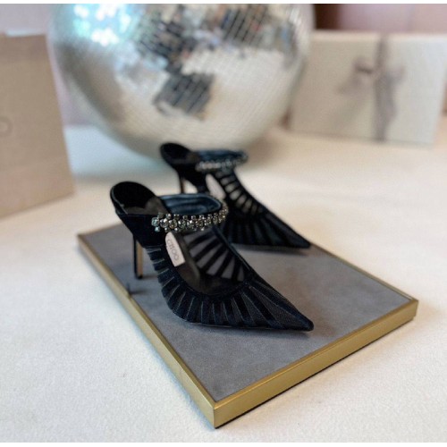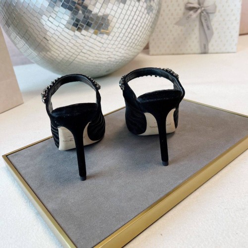 Элегантные черные босоножки Jimmy Choo из мягкого бархата. Высокий тонкий каблук 10 см подчеркнет стройность ваших ног и визуально сделает их длиннее. Модель с заостренным носком и россыпью прозрачных кристаллов, создающих игру света. Босоножки имеют анатомическую форму подъема, за счет чего ноги не устают даже после длительной прогулки. В нашем интернет-магазине вы можете купить копии босоножек с доставкой по Москве и по всей России.