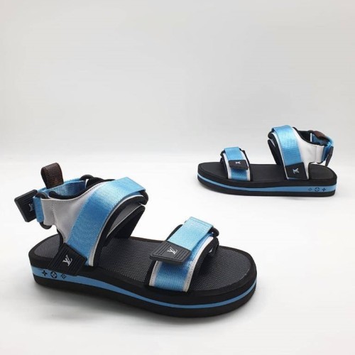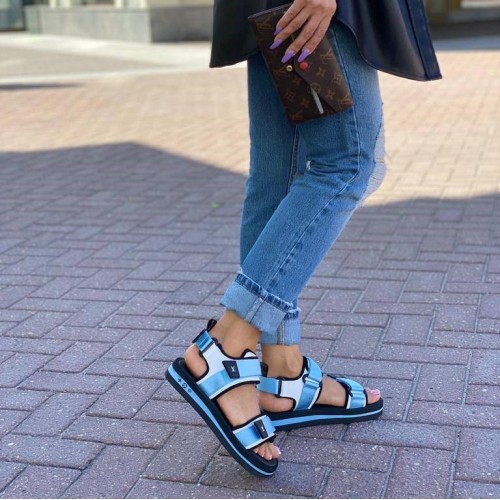 Черно-голубые босоножки Louis Vuitton из текстиля. Стильные босоножки легко регулируются ремешками, которые дополнены инициалами LV. Создавайте с ними различные актуальные образы. В нашем интернет-магазине вы можете купить копии босоножек с доставкой по Москве и по всей России.