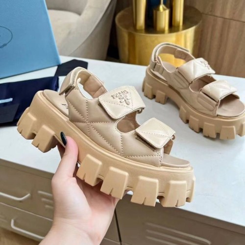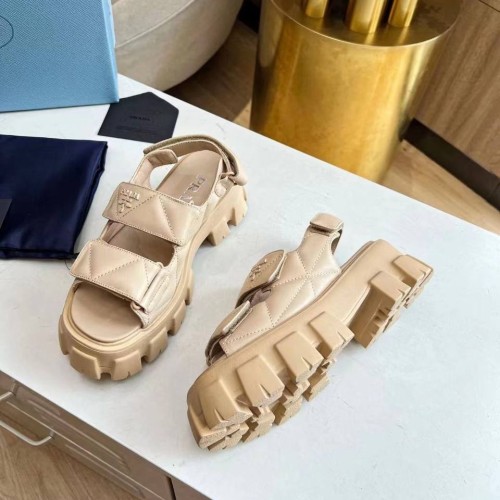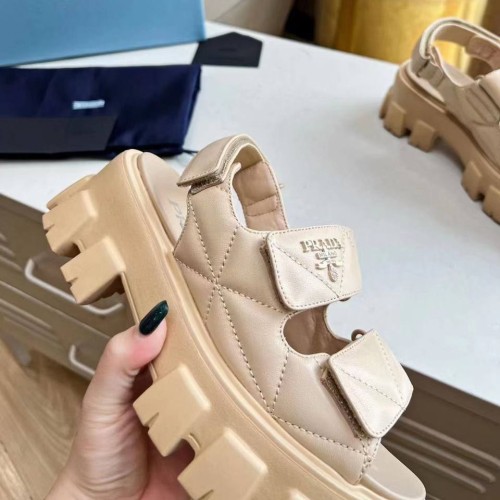 Бежевые босоножки Prada из натуральной кожи. Летняя женская обувь подходит для любого случая - от повседневных прогулок до праздничных мероприятий. Модный дизайн делает эту обувь идеальным выбором для летнего гардероба. Вы сможете создать нарядный или повседневный образ, который подчеркнет вашу индивидуальность и стиль. В нашем интернет-магазине вы можете купить копии босоножек с доставкой по Москве и по всей России.