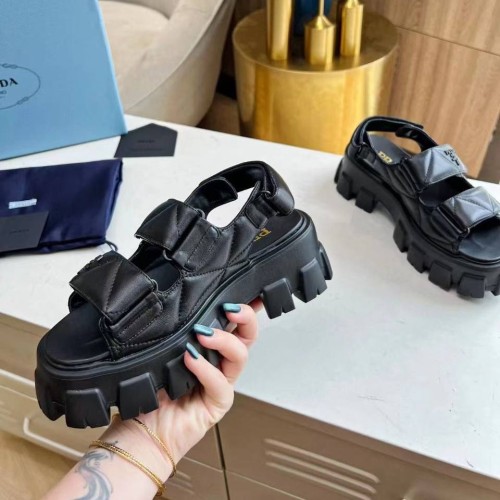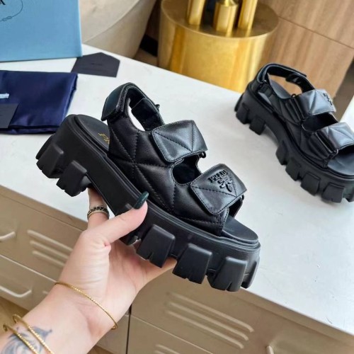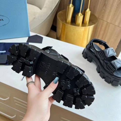 Черные босоножки Prada из натуральной кожи. Босоножки созданы для того, чтобы обеспечить не только элегантность, но и максимальный комфорт для ваших ног. Регулируемый ремешок на пятке позволяет настроить посадку стоп по своему вкусу, а массивная подошва устойчива на любых поверхностях. В нашем интернет-магазине вы можете купить копии босоножек с доставкой по Москве и по всей России.
