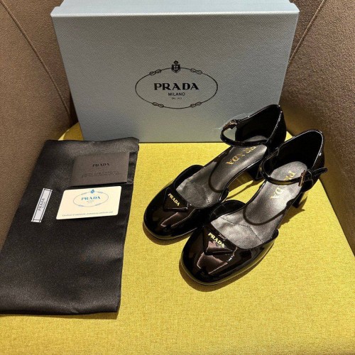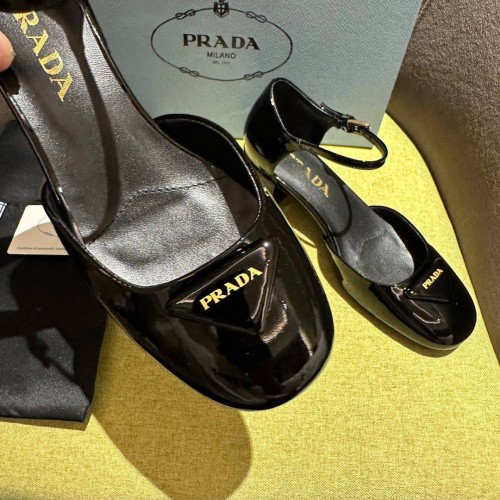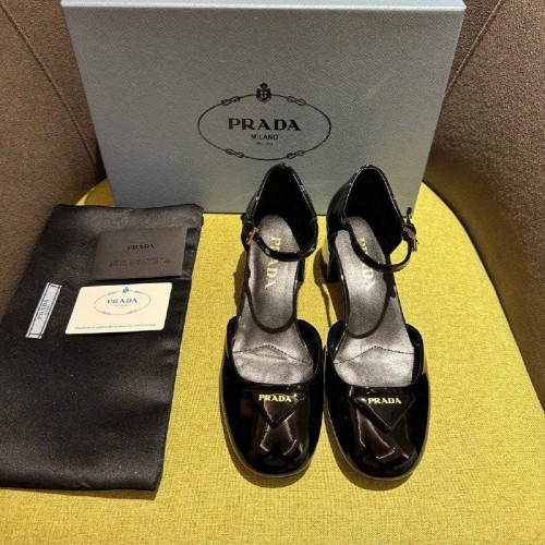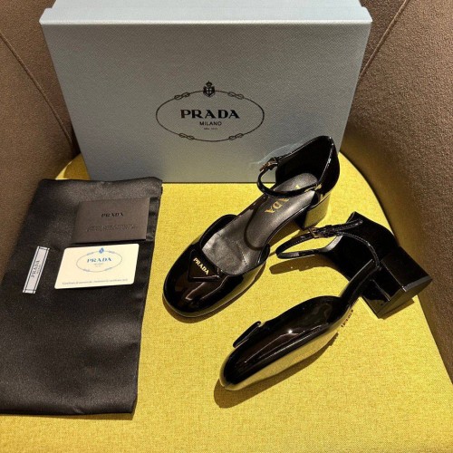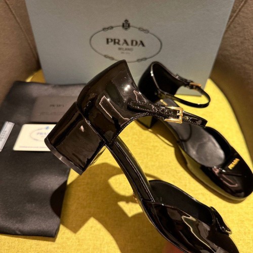 Черные босоножки Prada из лакированной кожи. Модель имеет притупленный носок, украшенный треугольной пряжкой с культовым логотипом бренда и устойчивый каблук, высотой 4,5 см. Тонкий ремешок регулирует посадку по ноге. В нашем интернет-магазине вы можете купить копии босоножек с доставкой по Москве и по всей России.