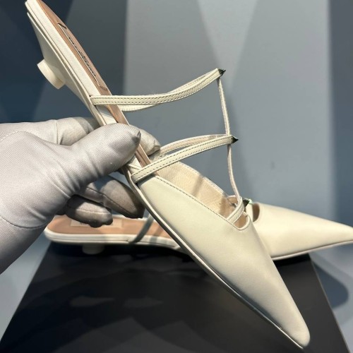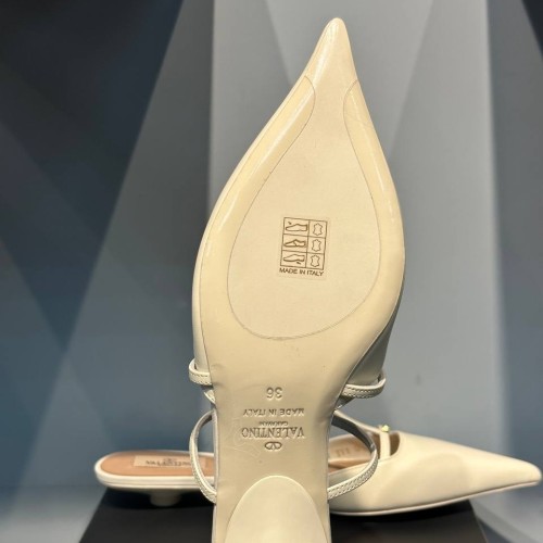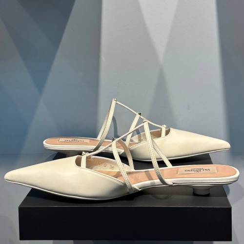 Модные босоножки белого цвета от Valentino из натуральной кожи. Острая форма носа придает обуви изящный и стильный вид, а низкий каблук делает ее удобной для повседневной носки. Такие босоножки идеально подходят как для офисного стиля, так и для повседневного городского образа. В нашем интернет-магазине вы можете купить копии босоножек с доставкой по Москве и по всей России.