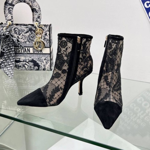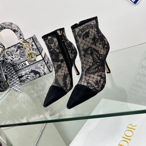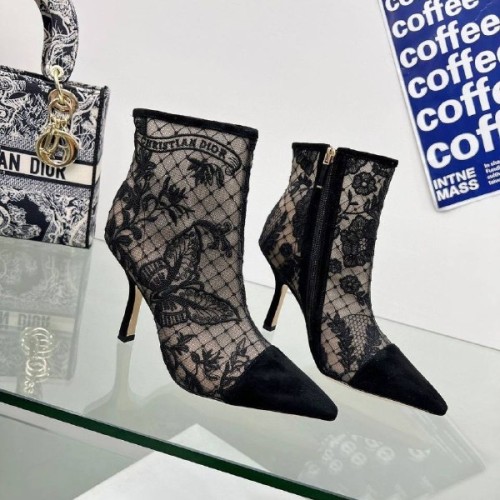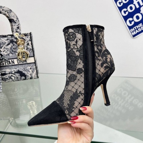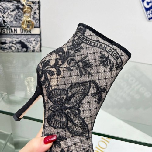 Черные женские ботильоны Cristian Dior выполнены из прозрачной сетки и натуральной замши. Изящная модель имеет тонкий каблук 9,5 см и заостренный носок. Элегантный ажурный эффект в виде бабочек делают пару обуви фаворитом. Удобная молния сбоку позволяет быстро и легко одевать и снимать обувь. В нашем интернет-магазине вы можете купить копии ботильон с доставкой по Москве и по всей России.