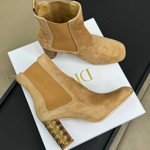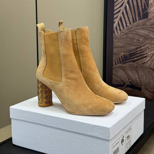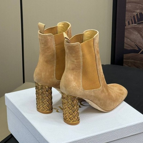 Женские ботильоны Cristian Dior горчичного оттенка из натуральной замши. Удобные элегантные ботильоны с квадратным носком придадут завершающий штрих любому сезонному образу. Модель на устойчивом каблуке, высотой 10 см с золотистым декором не оставит вас равнодушной. В нашем интернет-магазине вы можете купить копии ботильон с доставкой по Москве и по всей России.