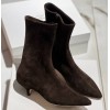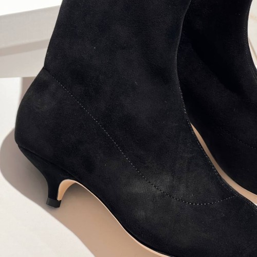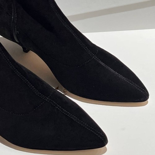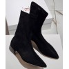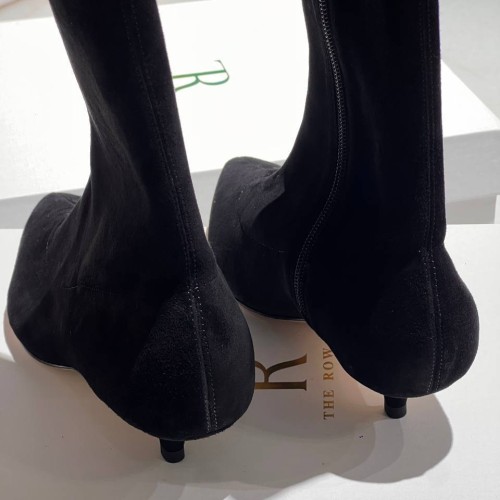 Черные женские ботильоны The Row из натуральной замши. Ботильоны - одна из самых женственных демисезонных моделей. Замша мягко облегает ногу и универсально подстраивается под разные параметры. Заостренная носочная часть и каблук - элементы дизайна, усиливающие элегантность пары. В нашем интернет-магазине вы можете купить копии ботильон с доставкой по Москве и по всей России.