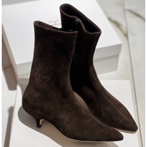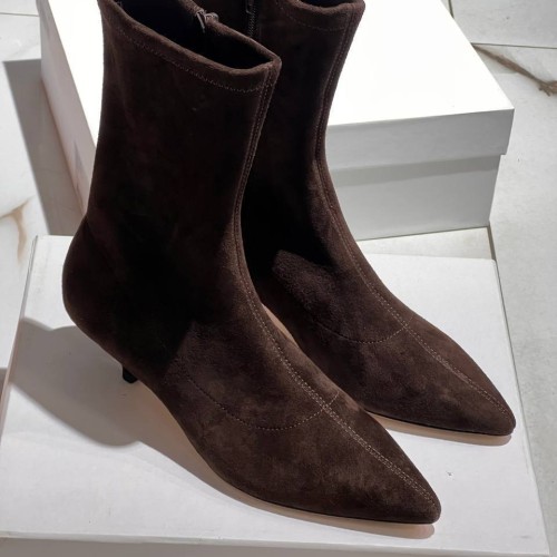 Коричневые женские ботильоны The Row из натуральной замши. Лаконичные ботильоны легко представить на вечеринках, дневных прогулках и даже деловых переговорах. Заостренная носочная часть и каблук - элементы дизайна, усиливающие элегантность пары. В нашем интернет-магазине вы можете купить копии ботильон с доставкой по Москве и по всей России.