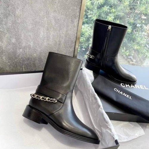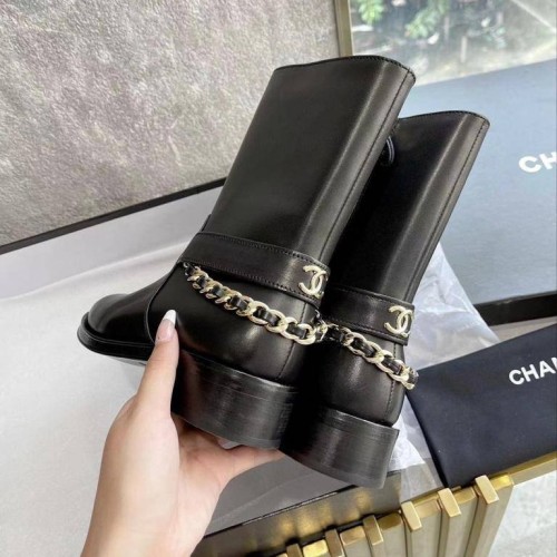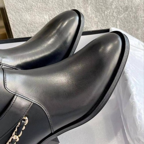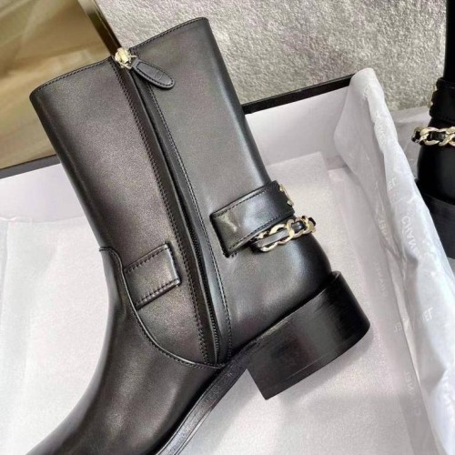Стильные черные женские ботинки от Chanel выполнены из высококачественной натуральной кожи. Ботинки декорированы золотой цепочкой и логотипом, сплетенным с кожей. Удобная подошва и анатомическая стелька обеспечат вашим ногам полный комфорт. В нашем интернет-магазине вы можете купить копии ботинок с доставкой по Москве и по всей России.