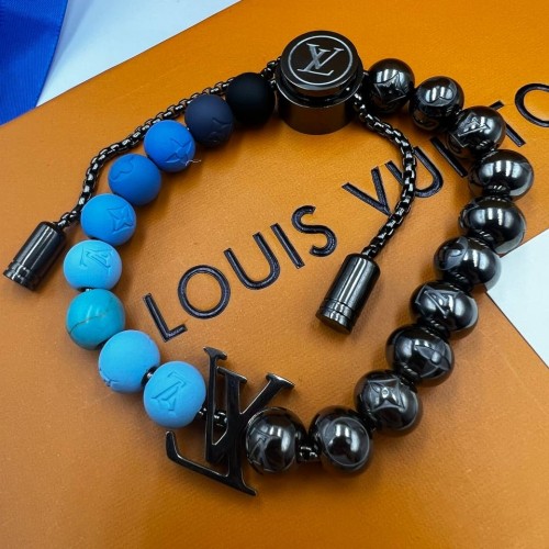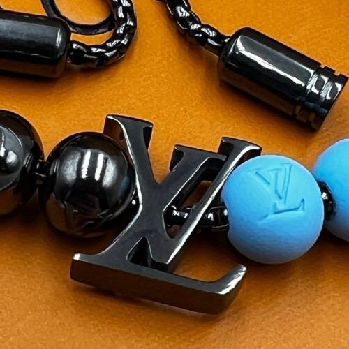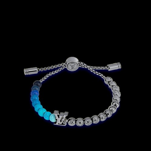 Выразительный браслет Louis Vuitton Beads создан привлекать внимание. Модель сочетает в себе бусины из серебристого металла с гравировкой узора Monogram, инициалы LV и голубые бусины. Дизайн на регулируемой цепочке завершает миниатюрная подвеска LV. В нашем интернет-магазине вы можете купить копии браслетов с доставкой по Москве и по всей России.
