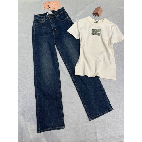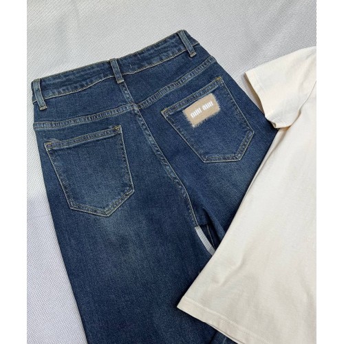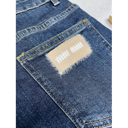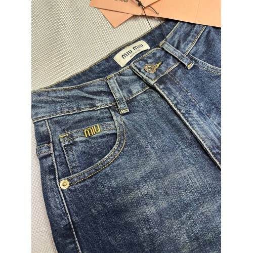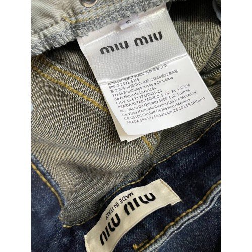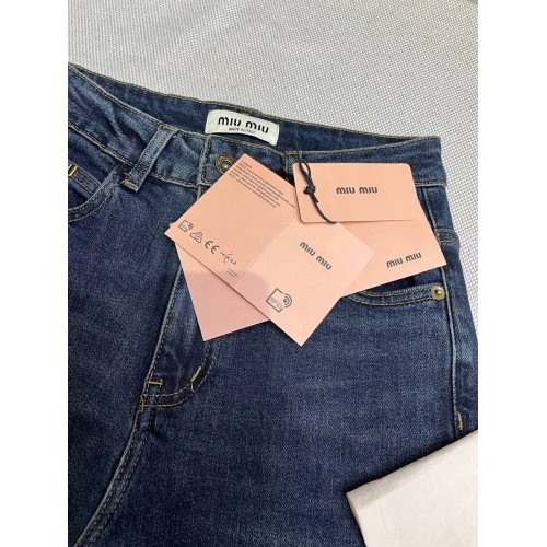 Джинсы Miu Miu синего цвета. Джинсы подходят для прогулки в прохладные дни. Модель подарит Вам не только удобство и комфорт, но и доставит множество внимания, которое Вы к себе привлечете. В нашем интернет-магазине вы можете купить копии джинсов с доставкой по Москве и по всей России.