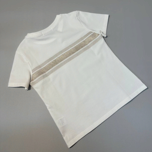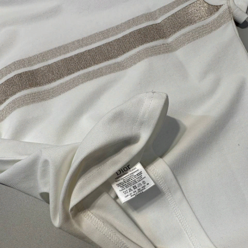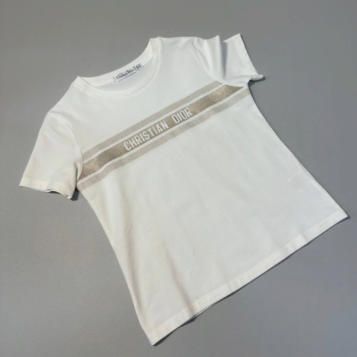 Футболка Christian Dior белого цвета. Модель дополнена контрастной полосой с надписью ''CHRISTIAN DIOR'' спереди. Изделие прекрасно впишется в любой ваш образ. В нашем интернет-магазине вы можете купить копии футболок с доставкой по Москве и по всей России.
