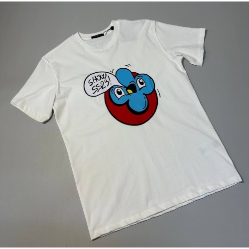 Футболка от Louis Vuitton белого цвета из качественного текстиля. Футболка дополнена прикольным принтом. Легкая футболка идеально подойдет для летнего сезона. В нашем интернет-магазине вы можете купить копии футболок с доставкой по Москве и по всей России.
