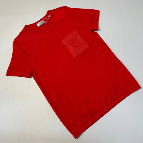 Стильная футболка Нermes красного цвета. Красная футболка силуэта оверсайз будет солировать в образе с вещами сдержанных оттенков. Модель украшена фирменной нашивкой. В нашем интернет-магазине вы можете купить копии футболок с доставкой по Москве и по всей России.