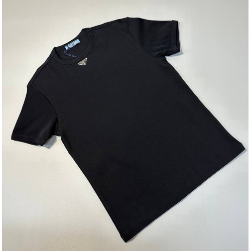 Стильная футболка Prada черного цвета. Черная базовая футболка с короткими рукавами и круглым вырезом украшена фирменной треугольной нашивкой. Модель комфортного прямого кроя выполнена из материала, который хорошо пропускает воздух, слегка тянется, не сковывая движения и почти не ощущается на теле. В нашем интернет-магазине вы можете купить копии футболок с доставкой по Москве и по всей России.