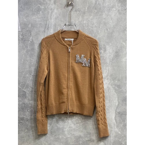 Крутой коричневый кардиган от MaxMara из текстиля. Изделие выполнено из стопроцентного кашемира. На груди кардигана виднеется эмблема бренда. В нашем интернет-магазине вы можете купить копии кардиганов с доставкой по Москве и по всей России.