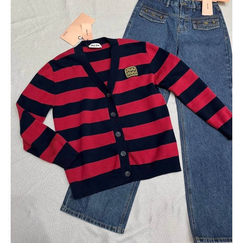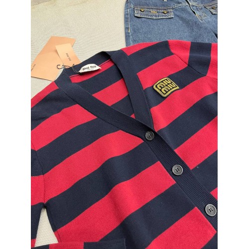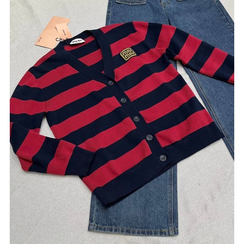 Кардиган Miu Miu красно-синего цвета в полоску. Стильная и удобная модель отлично впишется в ваш гардероб. Кардиган подарит Вам тепло даже в прохладные дни. В нашем интернет-магазине вы можете купить копии кардиганов с доставкой по Москве и по всей России.