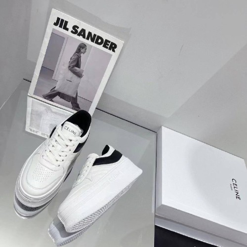 Белые кеды Celine изготовлены из натуральной кожи. Модные и современные кеды имеют черные кожаные вставки и логотип бренда на заднике. Высокая подошва обеспечит вашим ногам полный комфорт и идеальное сцепление. В нашем интернет-магазине вы можете купить копии кед с доставкой по Москве и по всей России.