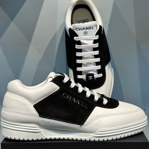 Бело-черные кеды Chanel с замшевыми вставками из натуральной кожи. Модные кеды сочетают в себе модный дизайн и функциональность. Логотип бренда на язычке и боковых поверхностях. Роскошный выбор для ценителей спортивного стиля и экспериментов с образами. В нашем интернет-магазине вы можете купить копии кед с доставкой по Москве и по всей России.