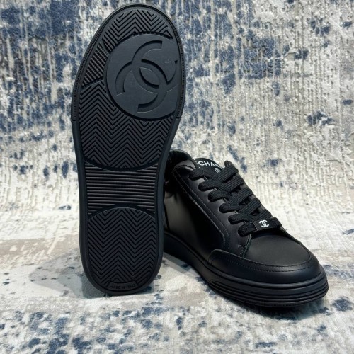 Черные стильные женские кеды Chanel из натуральной кожи. Стильный дизайн, натуральные материалы, удобство и легкость - все эти качества сочетает в себе данная модель кед. Удобная шнуровка позволяет быстро и легко одевать стильную обувь. В нашем интернет-магазине вы можете купить копии кед с доставкой по Москве и по всей России.