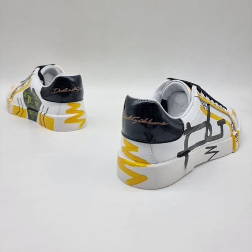 Женские белые кеды Dolce & Gabbana из натуральной мягкой кожи с принтами-граффити. На белой широкой подошве надписи, будто выполненные от руки. Такая обувь идеально завершит выбранный вами образ и привлечет внимание окружающих. В нашем интернет-магазине вы можете купить копии кед с доставкой по Москве и по всей России.