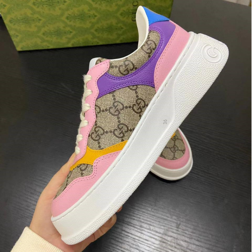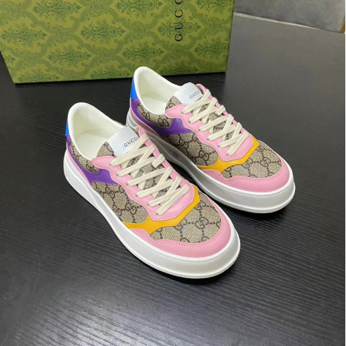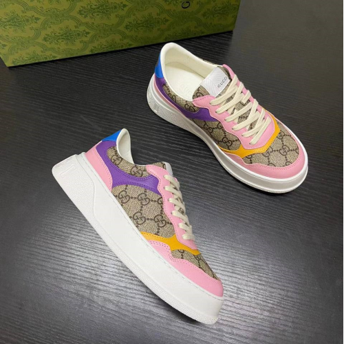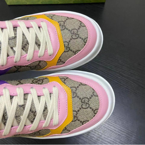 Кеды Gucci бежевого цвета с кожаными вставками розового и фиолетового цвета - обязательный элемент гардероба каждой девушки! Данная модель стильных кед обладает высокой прочностью и износостойкостью. Уникальная пара обуви отлично сочетается как с повседневным, так и спортивным образом. В нашем интернет-магазине вы можете купить копии кед с доставкой по Москве и по всей России.