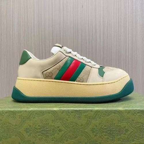Бежевые кеды от Gucci из натуральной кожи и канвы с знаменитой монограммой. Созданные под влиянием классических кроссовок 1970-х годов, кеды Screener названы в честь защитного спортивного приема. Символический стиль представлен в серой канве с зелеными и красными кожаными деталями и символом GG. В нашем интернет-магазине вы можете купить копии кед с доставкой по Москве и по всей России.