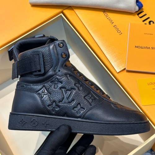 Черные высокие женские кеды Louis Vuitton выполнены из натуральной кожи с тиснением. Кеды рассчитаны, в первую очередь, на молодых девушек, любящих яркую и красивую жизнь. Идеальный дизайн не оставит вас равнодушной. В нашем интернет-магазине вы можете купить копии кед с доставкой по Москве и по всей России.