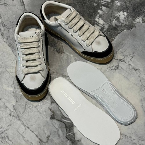Белые женские кеды с черными вставками Miu Miu из натуральной кожи. Игра на контрасте фактур выделяют эту пару среди классических моделей. Сочетание белого цвета верха и кремовой подошвы добавляет дополнительный акцент в дизайн. Минималистичные кеды впишутся в десятки образов и сократят время на утренние сборы. В нашем интернет-магазине вы можете купить копии кед с доставкой по Москве и по всей России.