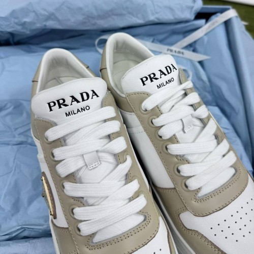Женские бело-бежевые кеды Prada из натуральной кожи. Лаконичные кеды в уличном стиле - самая беспроигрышная обувь для повседневных образов. Насыщенные цвета обуви позволяют создавать множество новых луков. Новая модель создана для тех, кто предпочитает активный образ жизни и хочет чувствовать себя уверенно на улицах города. В нашем интернет-магазине вы можете купить копии кед с доставкой по Москве и по всей России.