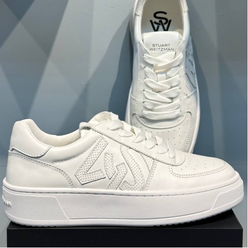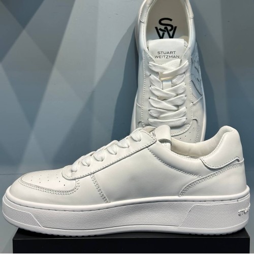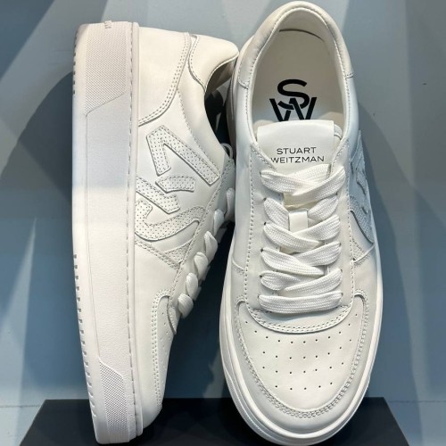 Белые кеды Stuart Weitzman из натуральной кожи. Стильные кеды из последней коллекции имеют аппликации по бокам и удобную шнуровку. Мягкий язычок и резиновая подошва полностью обеспечивают комфорт ногам. Логотип бренда на язычке и подошве. В нашем интернет-магазине вы можете купить копии кед с доставкой по Москве и по всей России.
