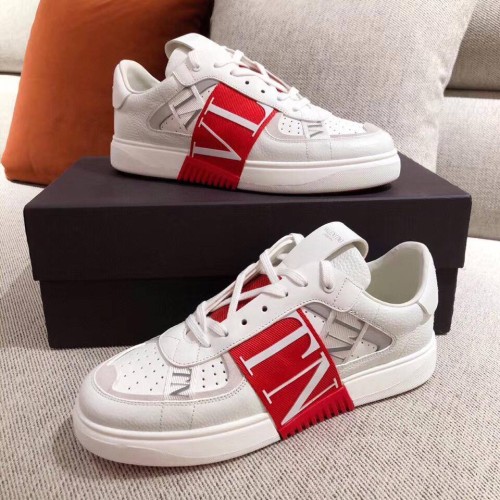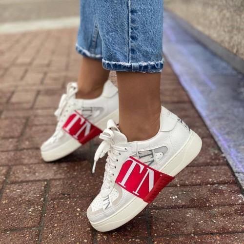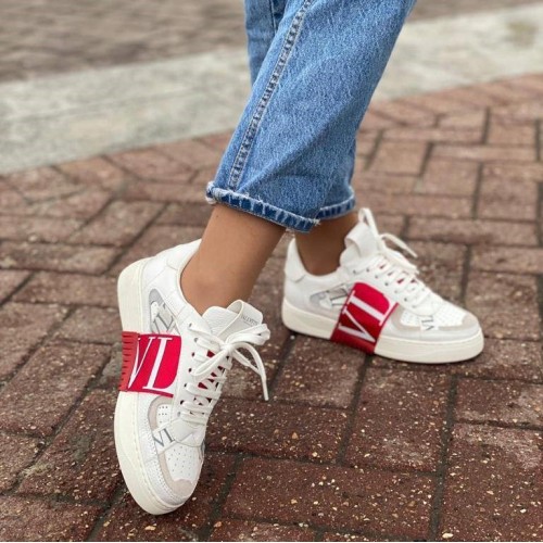 Белые кеды Valentino из натуральной кожи. Кеды украшены лентами красного цвета с инициалами бренда. Подходят для прогулок по городу, встреч с друзьями, поездок. В нашем интернет-магазине вы можете купить копии кед с доставкой по Москве и по всей России.