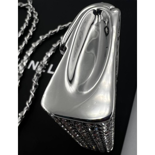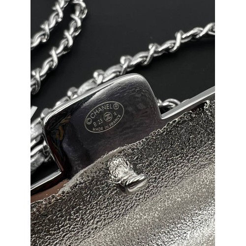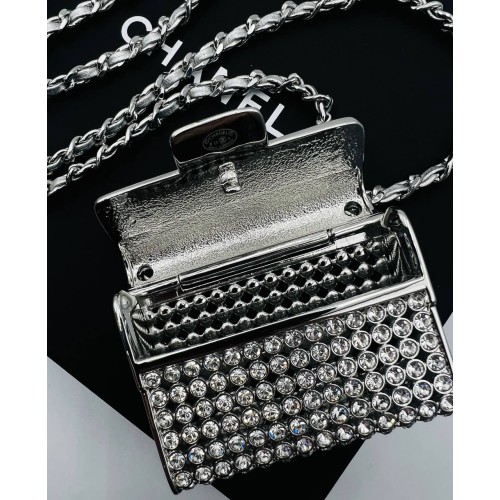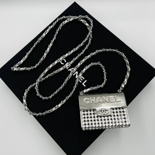 Эксклюзивное серебристое колье Chanel micro bag из ювелирного сплава. Стильное колье можно носить через плечо и как пояс. Многофункциональный аксессуар привлечет внимание своей элегантностью и подчеркнет вашу индивидуальность, добавив шарма образу. Колье выполнено из высококачественного сплава, который обеспечивает прочность и долговечность изделия. В нашем интернет-магазине вы можете купить копии колье с доставкой по Москве и по всей России.