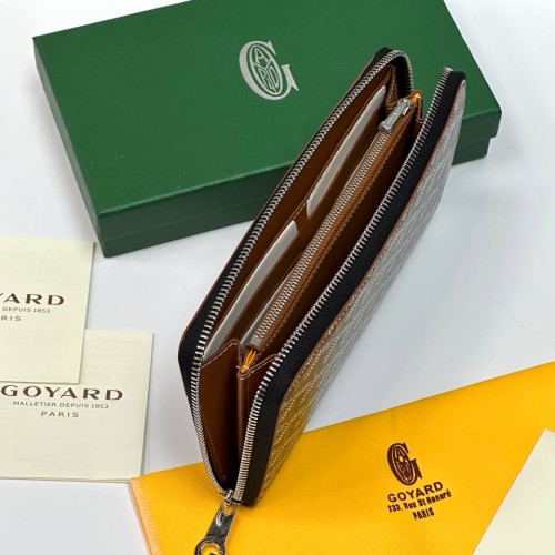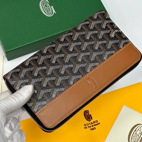 Коричневый кошелек Goyard из канвы и натуральной кожи. Станет великолепным дополнением вашей сумочки. Практичный и современный аксессуар, который нужен каждой моднице. В нашем интернет-магазине вы можете купить копии кошельков с доставкой по Москве и по всей России.