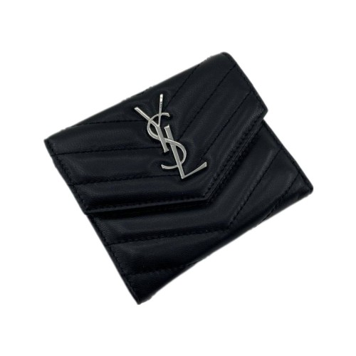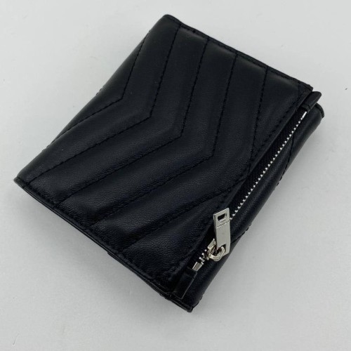 Кошелек с закрытием на кнопку. Внутри: отделение для банкнот, карман молнии, два плоских кармана и шесть слотов для карт. Снаружи: карман на кнопке.