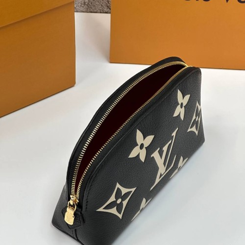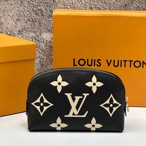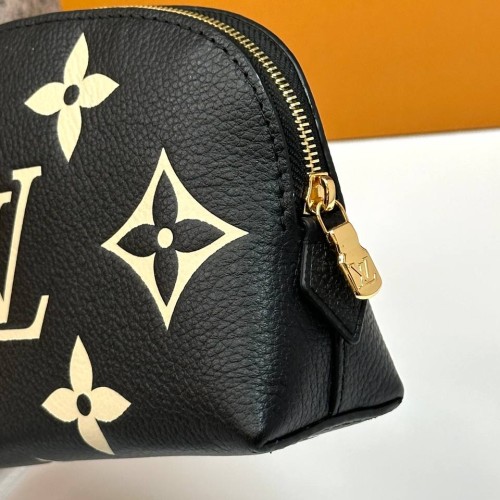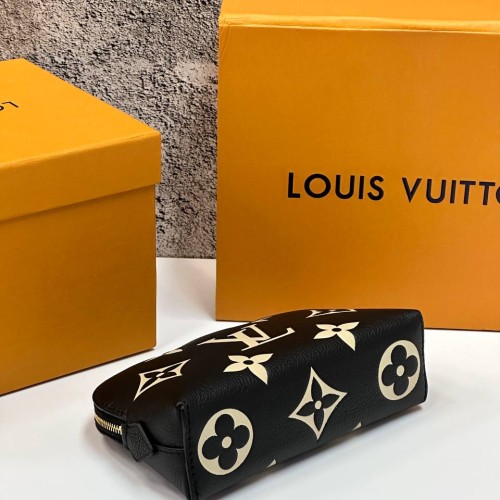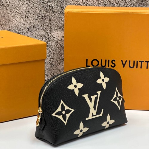 Черная косметичка Louis Vuitton из натуральной кожи. Незаменимый компактный аксессуар для современной модницы. Элегантную модель украшают тисненные цветы узора Monogram. В нашем интернет-магазине вы можете купить копии косметичек с доставкой по Москве и по всей России.