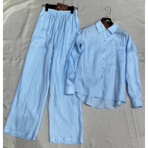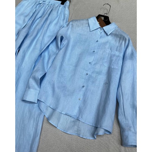 Костюм Loro Piana голубого цвета. Универсальная модель подойдет для повседневных выходов. Качественный материал порадует любую модницу и станет неповторимым элементом в гардеробе. В нашем интернет-магазине вы можете купить копии костюмов с доставкой по Москве и по всей России.