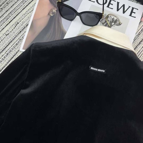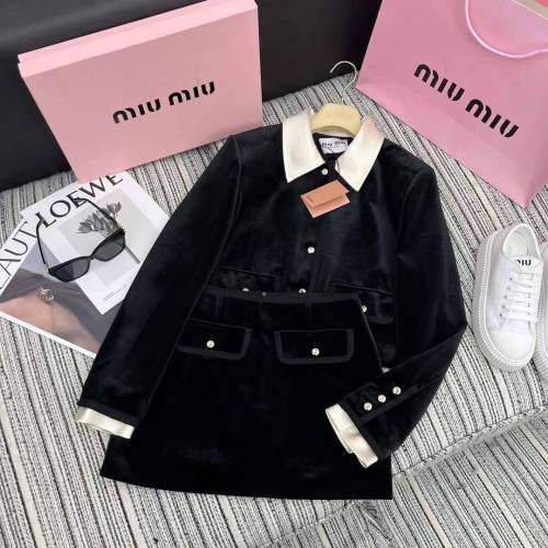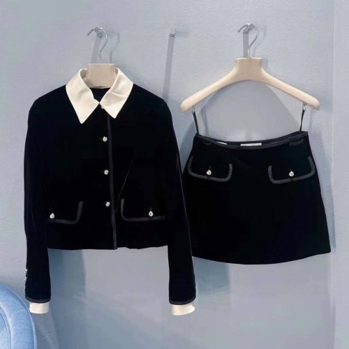 Костюм Miu Miu черного цвета с белыми вставками. Стильная и удобная модель отлично впишется в ваш базовый гардероб. Спокойный черный оттенок приглушает яркость, делая образ более строгим и элегантным. В нашем интернет-магазине вы можете купить копии костюмов с доставкой по Москве и по всей России.