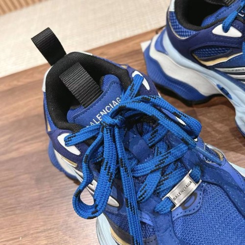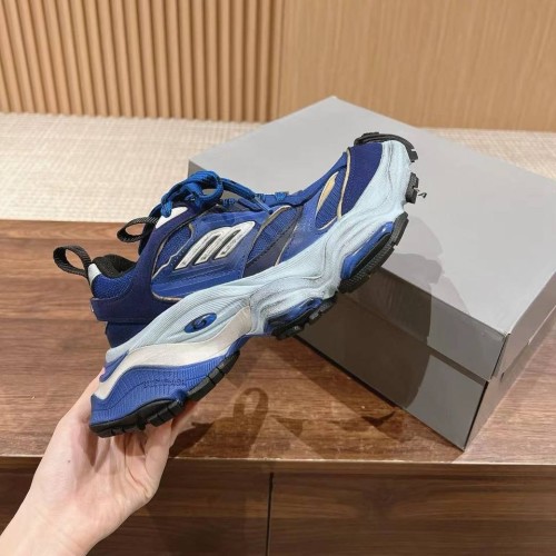 Синие кроссовки Balenciaga изготовлены из натуральной кожи и текстиля. В дизайне модели заметны увеличенные объемы и отражающие детали на подошве, задней части и некоторых элементах верха. Детали износа придают обуви футуристический облик, на язычке и верху обуви расположено вышитое лого Balenciaga, а также спортивная иконка 3B на боковых сторонах. В нашем интернет-магазине вы можете купить копии кроссовок с доставкой по Москве и по всей России.