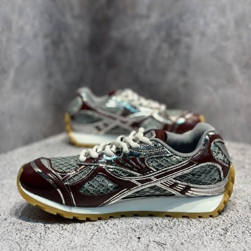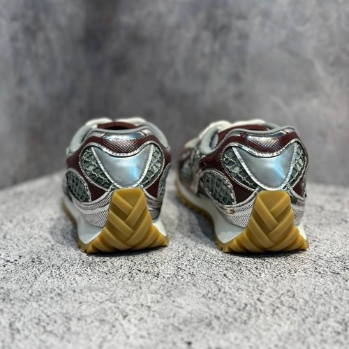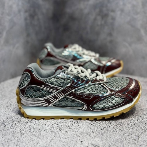 Серебристо-коричневые кроссовки Bottega Veneta из сетчатой ткани. Обувь с мягкой и эластичной подошвой прекрасно дополнит любой спортивный образ. Данная модель придется по вкусу тем, кто ценит не только внешний вид, но и комфорт. Прорезиненная отделка по всей поверхности придает обуви динамичность. В нашем интернет-магазине вы можете купить копии кроссовок с доставкой по Москве и по всей России.