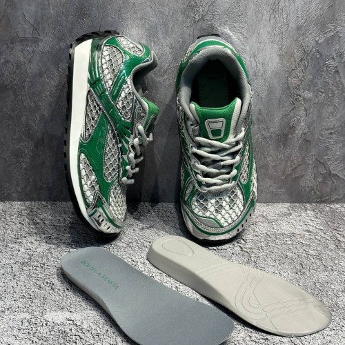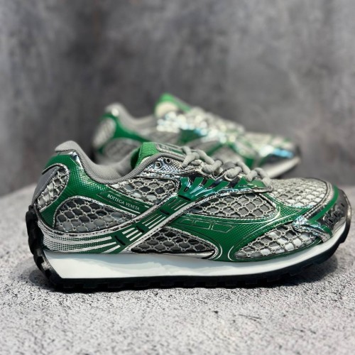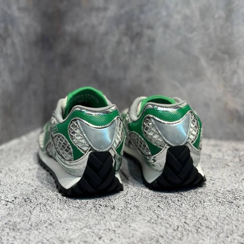 Серебристо-зеленые кроссовки Bottega Veneta из сетчатой ткани. Верх выполнен из легкой текстильной сетки. Он отлично пропускает воздух и способствует быстрому отведению излишков тепла и влаги от стопы. Кроссовки станут универсальной вещью в вашем гардеробе. Выходите в них на легкую пробежку или на встречу с друзьями - в обоих случаях вы будете чувствовать себя великолепно. В нашем интернет-магазине вы можете купить копии кроссовок с доставкой по Москве и по всей России.