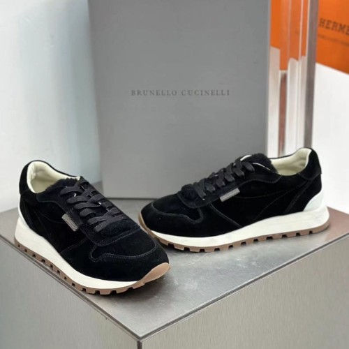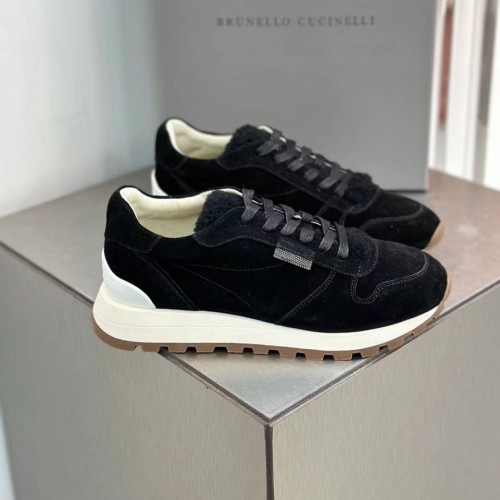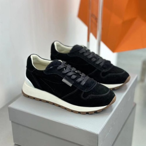 Черные женские кроссовки Brunello Cucinelli на широкой подошве сшили из бархатистой замши. Пластичный материал комфортно облегает стопу, повторяя все ее движения. Подошву дополнили слоем полимера ЭВА, который слегка амортизирует. В нашем интернет-магазине вы можете купить копии кроссовок с доставкой по Москве и по всей России.