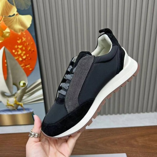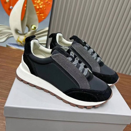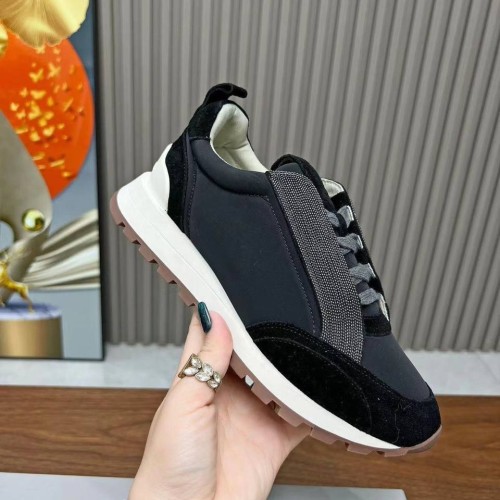 Черные женские кроссовки Brunello Cucinelli из бархатистой замши и текстиля. Кроссовки подойдут для бега и ходьбы на улице или в зале. Защищенная носочная и пяточная части обеспечивают долговечность использования. Легкая и бархатистая текстура замши сочетается с полосами из блестящей цепочки Мониль. В нашем интернет-магазине вы можете купить копии кроссовок с доставкой по Москве и по всей России.