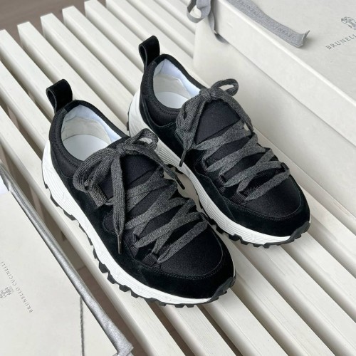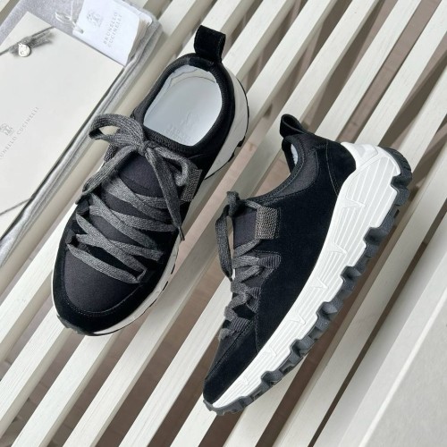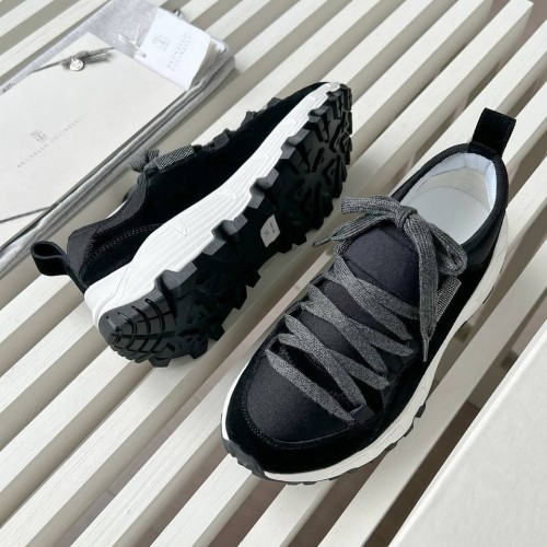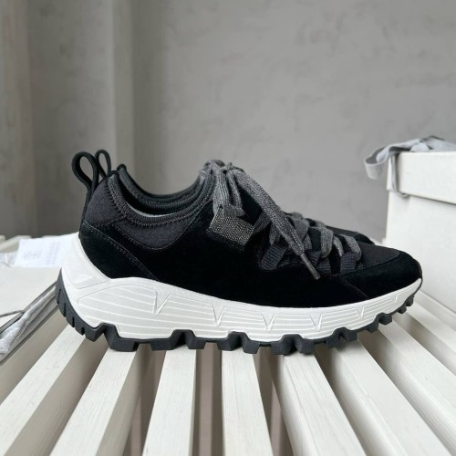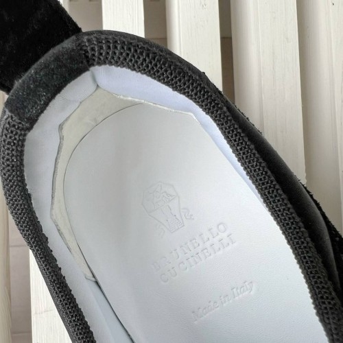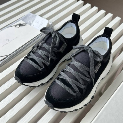 Модные черные кроссовки Brunello Cucinelli из текстиля и натуральной замши. Стильные кроссовки имеют массивную белую подошву и петлю на заднике. Удобная стелька повторяет форму стопы. Максимальный уровень комфорта гарантирован. В нашем интернет-магазине вы можете купить копии кроссовок с доставкой по Москве и по всей России.