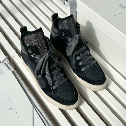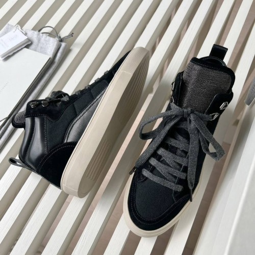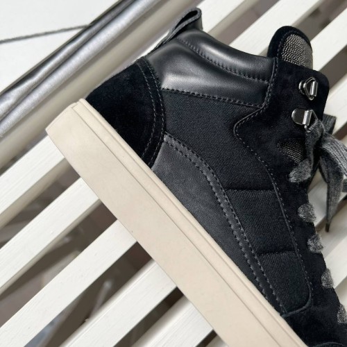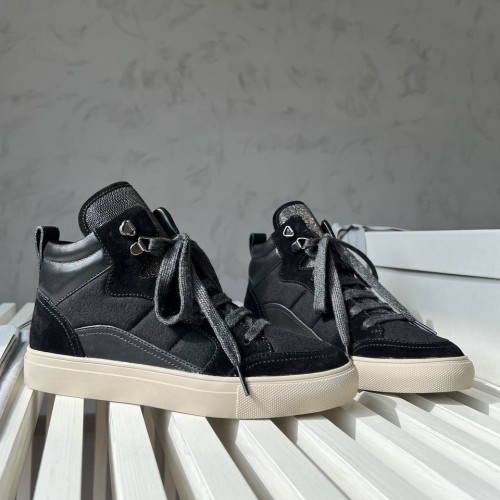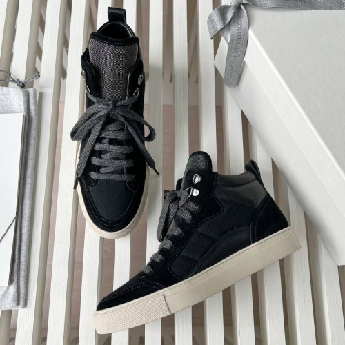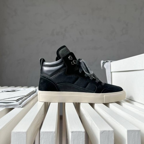 Высокие черные кроссовки Brunello Cucinelli из текстиля, натуральной кожи и мягкой замши замши. Стильные кроссовки имеют массивную белую подошву и петлю на заднике. Удобная стелька повторяет форму стопы. Максимальный уровень комфорта гарантирован. В нашем интернет-магазине вы можете купить копии кроссовок с доставкой по Москве и по всей России.