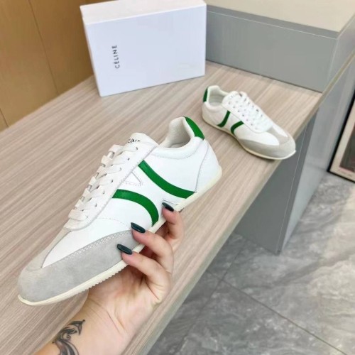 Белые кроссовки Celine из натуральной кожи и мягкой замши. Обувь с мягкой и эластичной подошвой прекрасно дополнит любой спортивный образ. Данная модель придется по вкусу тем, кто ценит не только внешний вид, но и комфорт. Легкая и гибкая подошва делает модель невесомой. Чем легче обувь, тем меньше вы устаете. В нашем интернет-магазине вы можете купить копии кроссовок с доставкой по Москве и по всей России.