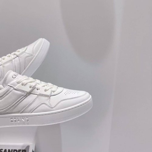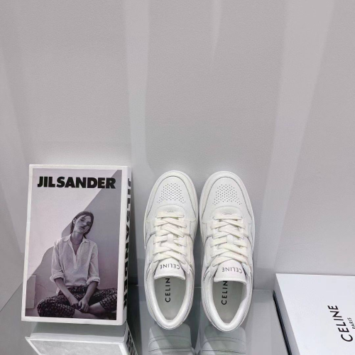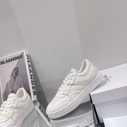 Кроссовки Celine - в белом цвете идеально подойдут не только под спортивный образ, но и повседневный наряд. Стильная модель изготовлена из натуральной кожи. Дышащие, благодаря перфорации, кроссовки идеально подойдут для ходьбы и прогулок в жаркую погоду. Высокая белая подошва, уникальной пары, добавит элегантности и зрительно удлинит ноги, а мягкая ортопедическая стелька с супинатором добавит комфорта вашим ногам. В нашем интернет-магазине вы можете купить копии кроссовок с доставкой по Москве и по всей России.