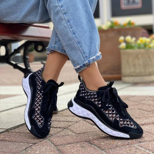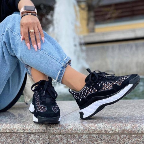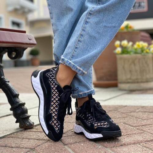 Черные кроссовки от Chanel выполнены из высококачественной натуральной замши. Современный дизайн кроссовок не оставит вас равнодушной. Качественные материалы полностью обеспечат комфорт вашим ногам и сохранят надолго внешний вид. В нашем интернет-магазине вы можете купить копии кроссовок с доставкой по Москве и по всей России.